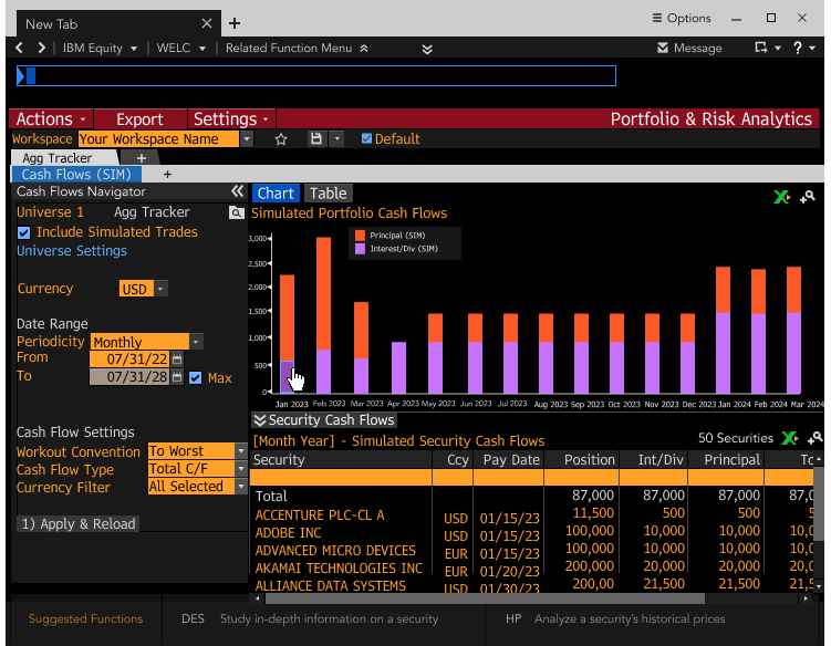 Is there a need to compare simulated portfolio cash flows and adjust positions to view how it affects cash?