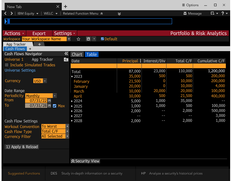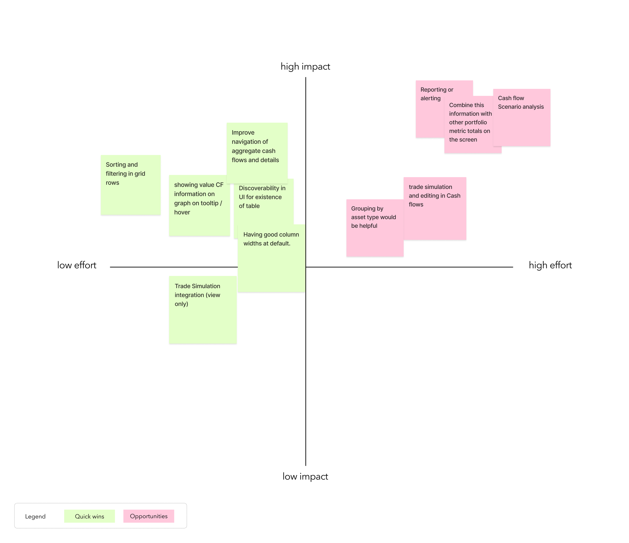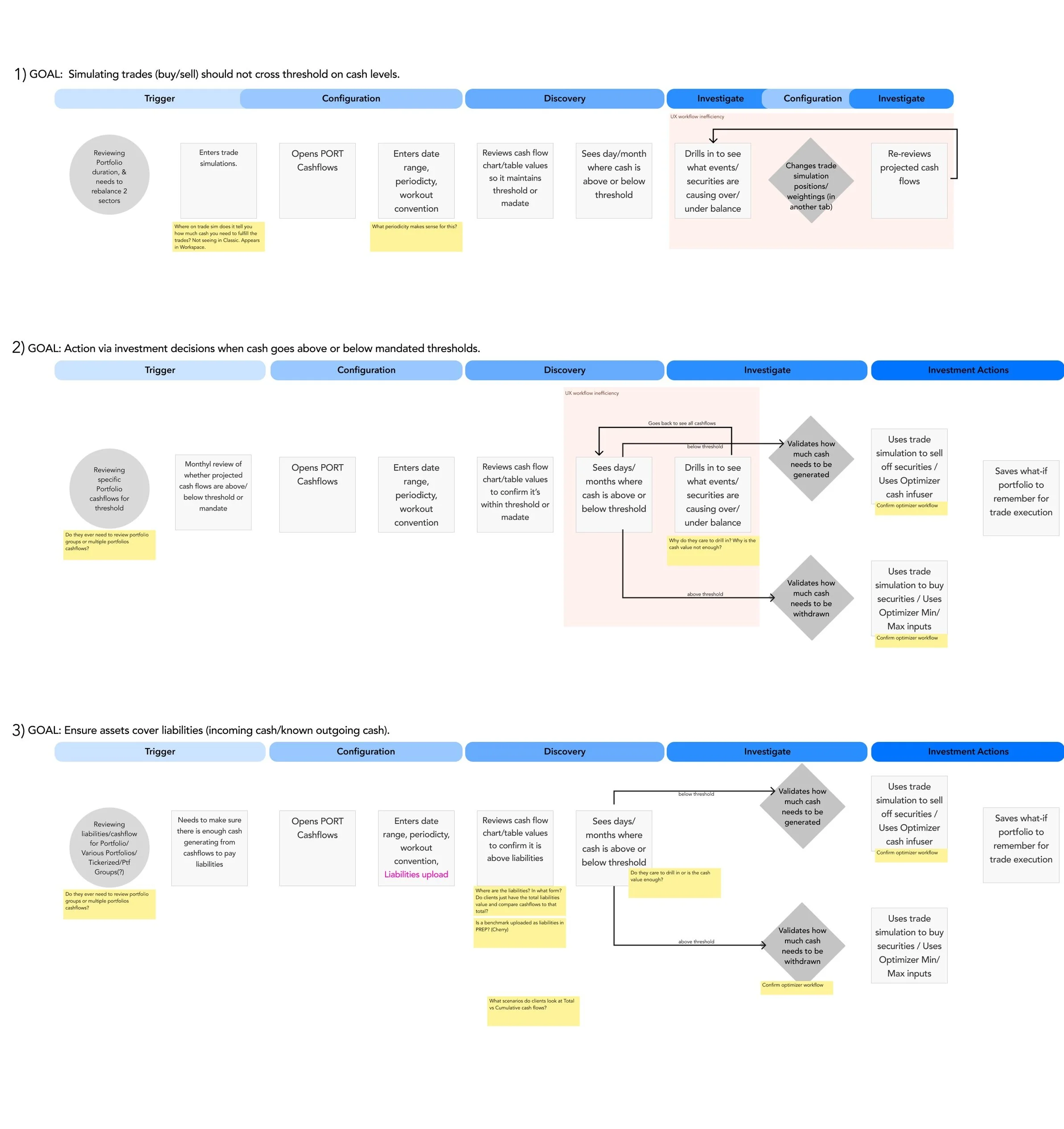 Two product managers owned different aspects of the Portfolio Risk & Analytics Cash Flows product. I met with them to learn about the user needs and discuss their goals.