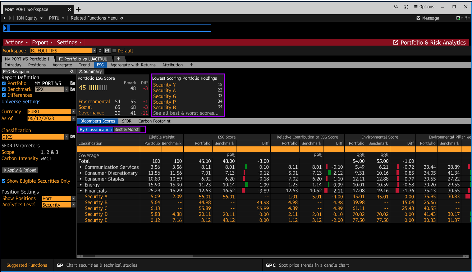 They didn’t find the tree view “noisy” and preferred to have the aggregate and security ESG data at once to analyze both these subjects on-the-fly.